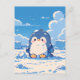 Share a touch of winter cheer with this heartwarming scene of a round, blue-and-white penguin chick nestled in a field of fresh, white snow. The digital illustration is rendered in a soft, painterly aesthetic, featuring a crisp and vibrant palette of sky blue, creamy white, and soft rosy cheeks. Against a brilliant azure sky, towering and fluffy white clouds drift over snow-covered arctic rocks, creating a whimsical and sunny winter atmosphere. The penguin’s sweet, wide-eyed expression and its soft, downy texture evoke a sense of peaceful seasonal joy. This postcard serves as a beautiful canvas for a heartfelt handwritten message or a serene mini-print to accent your workspace gallery wall. Whether it’s traveling through the mail to a loved one or pinned to your inspiration board, it brings a touch of calm to any setting.