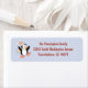 This return address envelope label has a Christmas holiday theme. There is a blue and white polkadot background with a cute ice skating penguin on the left. On the right, you can easily customise your address.