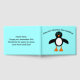 This beautiful guestbook features a cute penguin character with a white tummy, big blue eyes with black pupils and cute orange feet and beak. This charming little winter bird is sure to delight children and adults. The penguin sits on an icy pale blue background to remind him of his chilly Arctic home.