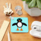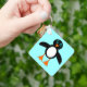 This fun Christmas keychain features a cute penguin character with a white tummy, big blue eyes with black pupils and cute orange feet and beak. This charming little winter bird is sure to delight children and adults. The penguin sits on an icy pale blue background to remind him of his chilly Artic home.