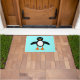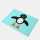 This awesome doormat features a cute penguin character with a white tummy, big blue eyes with black pupils and cute orange feet and beak. This charming little winter bird is sure to delight children and adults. The penguin sits on an icy pale blue background to remind him of his chilly Arctic home.