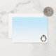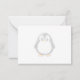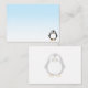 A cute black and white penguin drawing. Baby animal blank note cards. White and blue background. Gift idea for kids.