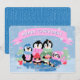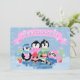 Share a Holiday moment with this cute blue Christmas card featuring a cartoon penguin family . Personalise it with your text and family's name . This sweet card is perfect for kids and animal lovers and will add a touch of winter magic to your Christmas celebration .