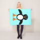This awesome fleece blanket features a cute penguin character with a white tummy, big blue eyes with black pupils and cute orange feet and beak. This charming little winter bird is sure to delight children and adults. The penguin sits on an icy pale blue background to remind him of his chilly Arctic home.