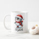 Create a unique custom Christmas mug with a festive design that features a cute penguin ice skating in a red Santa hat and scarf. The winter scene adds festive vibes to the holiday season, making this mug perfect for hot chocolate, cocoa, coffee, or tea. Personalise it with your name to create a fun gift for kids who love penguins, ice skating and other winter holidays activities. Use the template to add a name.