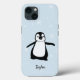 Cute Penguin illustration Blue Snow Custom Name Case-Mate iPhone Case