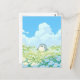 Brighten someone's day with this heartwarming scene of a sweet, chubby penguin nestled in a sprawling field of delicate blue and white blossoms. The digital illustration is rendered in a soft, painterly aesthetic with a soothing palette of sky blue, creamy white, and gentle yellow. Against a brilliant azure sky, towering and fluffy white clouds create a whimsical, airy atmosphere. The penguin’s gentle, curious expression and the soft floral textures evoke a sense of peaceful springtime joy. This postcard serves as a beautiful canvas for a heartfelt handwritten message or a serene mini-print to accent your workspace gallery wall. Whether it’s traveling through the mail to a loved one or pinned to your inspiration board, it brings a touch of calm to any setting.