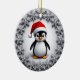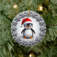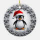 Cute Penguin in Christmas Hat Festive Snowflakes Ceramic Tree Decoration