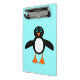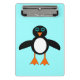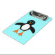 This awesome mini clipboard features a cute penguin character with a white tummy, big blue eyes with black pupils and cute orange feet and beak. This charming little winter bird is sure to delight children and adults. The penguin sits on an icy pale blue background to remind him of his chilly Arctic home.