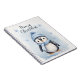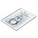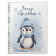 A charming winter illustration of an adorable little penguin wearing a blue striped hat and scarf, bringing a cosy and festive vibe. The soft snowflakes and gentle blue tones in the background create a magical winter atmosphere. Perfect for Christmas cards, posters, stickers, and seasonal crafts!