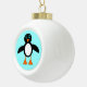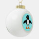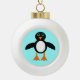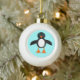 This awesome ornament features a cute penguin character with a white tummy, big blue eyes with black pupils and cute orange feet and beak. This charming little winter bird is sure to delight children and adults. The penguin sits on an icy pale blue background to remind him of his chilly Artic home.