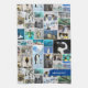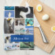 Cute Penguin Photo Collage Pattern with First Name Tea Towel