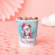These pink and snowy blue Christmas paper cups with a cute penguin, a tiny snowman, and festive greenery features a Merry Christmas saying and a template for your Family name to personalise them for the Xmas party.