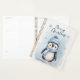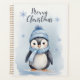 A charming winter illustration of an adorable little penguin wearing a blue striped hat and scarf, bringing a cosy and festive vibe. The soft snowflakes and gentle blue tones in the background create a magical winter atmosphere. Perfect for Christmas cards, posters, stickers, and seasonal crafts!