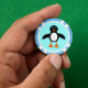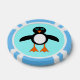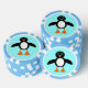 This awesome set of poker chips features a cute penguin character with a white tummy, big blue eyes with black pupils and cute orange feet and beak. This charming little winter bird is sure to delight children and adults. The penguin sits on an icy pale blue background to remind him of his chilly Antarctic home.