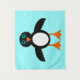 This awesome tapestry features a cute penguin character with a white tummy, big blue eyes with black pupils and cute orange feet and beak. This charming little winter bird is sure to delight children and adults. The penguin sits on an icy pale blue background to remind him of his chilly Arctic home.