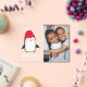 Delight your loved ones with this adorable penguin Christmas photo card, featuring a charming illustration of a penguin wearing a red winter hat surrounded by falling snow on a transparent acrylic background. The festive phrase "Warm Wishes" is displayed in white handwritten lettering, with space below for your name or custom text in a whimsical script. Personalise this penguin holiday card with your favourite vertical photo to create a unique and heartfelt holiday greeting. Perfect for combining playful design with cherished memories, this custom acrylic Christmas card is a joyful way to spread holiday cheer.
