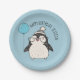 Cute Penguin with Blue Balloon Personalised Paper Plate