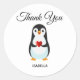 Cute Penguin with Heart Thank You Classic Round Sticker