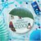 Cute penguins on Christmas party plates. Use "Personalize this template" to change the "Merry Christmas! 20xx" text & year and create a unique, customized party accessory. Featuring four cheeky penguins having a snowball fight, wrapped up for the snow in Christmas jumpers, scarves and woolly hats. One hitting another with a snowball, another wearing all the warm knitted Xmas clothes available, and a fourth wearing a balaclava and sitting on snowballs as if they're eggs. A playful item for Christmas, winter, or penguin fans.