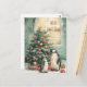 Cute penguins decorates Christmas tree, Christmas Postcard