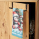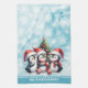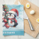 Cute Penguins Snowy Blue Personalised Christmas Tea Towel