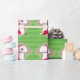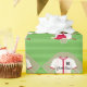 Cute baseball themed design. Featuring on the front a red and white striped baseball jersey which can be customised with a name and number, a red baseball cap, baseball and baseball bat. The background features a baseball field.