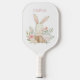 Adorable pink watercolor bunny rabbit in a wicker basket pickleball racket.  Personalise with your choice of name. Pink and white flowers surround this little cutie.  Perfect for that bunny loving girl. Just too cute.