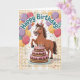 This funny personalised horse birthday card is perfect for anyone who loves horses. The front of this card has a cartoon horse wearing a birthday hat. The horse is surrounded by birthday decorations and a chocolate cake with candles. You are able to personalise the inside of this card with your name and custom message, or you can leave the message as "Wishing you a very happy birthday".