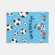 Here's a fun design for anyone who is a fan of football / soccer. It features a pattern of balls, Christmas decoratrions including ornaments and snowflakes, against a sky blue background. Personalise with the name of your choice.