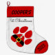 How about a personalised Christmas stocking for your puppy's 1st Christmas holiday> This cute stocking has a Santa costume in the shape of a paw print and has a place for your pup's name and the year.