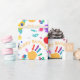This cute and colourful wrapping paper design features a collection of colours, with a colourful hand print, ABC, 123 with Happy Birthday & name plus background. This wrapping can be personalised with any child's name. This awesome finger paint ABC, 123 themed party supplies is an excellent addition to any birthday party for kid's of all ages.
