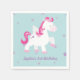 Personalised Paper Napkin featuring a Cute magical unicorn flying in the sky with purple stars. Cute and fun design for special for a girl who loves unicorns and magical ponies. Custom monogrammed gift.