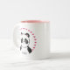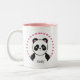 This panda coffee mug features an illustration of a cute panda bear that has black and white fur and a touch of pink in its ears. The bear is surrounded by an arch of small pink hearts. Personalise this panda mug with your name or text of your choice. This would be a great gift for a panda bear lover or panda bear fan.