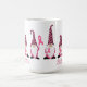 Whimsical gnomes holding pink breast cancer awareness ribbons.