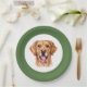 These Golden Retriever Christmas paper plates are the perfect addition to any family dinner. This design is complete with an adorably cute golden retriever watercolor graphic, as well as a red bowtie. Enjoy the holiday!