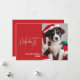 This cute pet photo Holiday Card features a funny quote "I'm on the nice list... I think", on a red background. The photo and text can be personalised using the design tools.