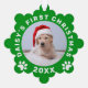 Create your own, Personalised Cute Pet's First Christmas Green White Paw Prints Ornament Card in snowflake shaped of your baby or pet round photo with curved text ornament card in white and dark blue or or create a unique gift for your loved ones.