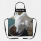 This funny photo features Olive, a beautiful Labrador mix who's too hungry to wait for her bowl to be set down. Cute apron for people who like to eat right away!