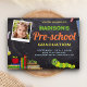 Amaze your guests with this cute preschool graduation invite featuring cute elements with vibrant typography against a chalkboard background. Simply add your event details on this easy-to-use template and adorn this card with your child's favourite photo to make it a one-of-a-kind invitation. Flip the card over to reveal a colourful stripes pattern on the back of the card.