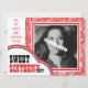 Upload a favourite black and white photograph of your special birthday girl and personalise the reverse side with all the fun birthday party or sleepover slumber party details and contact information. This invitation is very feminine with it's super sweet country western bright red and white paisley bandanna patterned background and old fashioned saloon and handwritten scrawl type font text in black, red, and white to match.