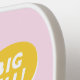 Cute Pickle playing Pickleball on light pink background with "Big Dill" text. Back features a pattern with pickles playing pickleball.