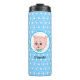 Cute pig cartoon with polka dots on pturquoise background thermal tumbler.