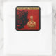 In a square are 2 pigs: one (black papercut Chinese style) seems to come sniff a golden papercut shape (inside is the second pig with the Chinese symbol). Behind them there is a red background formed by large decorative and ornamented letters with the words: "Pig Year" and at the top "Year of the Pig". Design on square sticker. Matching greeting card, postcard, craft products and more. Perfect for Chinese New Year 2019 of the Pig or birthday (people born in the Pig year). ------ "The Pig (豬) is the twelfth and the last sign of the Earthly Branches (亥). In the continuous Sexagenary cycle, every twelfth year corresponds to Hai, and is commonly called "the Year of the Pig" (豬年). There are five types of Pigs, named after the Chinese elements. In order, they are: Metal, Water, Wood, Fire, and Earth.