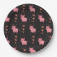 Cute Pig Piggy with Pink Heart Pattern Black Style Paper Plate