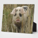 This awesome plaque features a beautiful photograph of a cute pink spotty pig emerging from some tall grass.