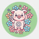 Cute Pig with Peace Sign & 70's Themed Flowers Classic Round Sticker