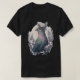 I give wanted to give this a 4 instead of a 5 because these Basic DARK T0shirts run unexpectedly SLIM or Narrow. Which is great if you do not have a potbelly, but I have a paunch. It isn't the shirt's fault that I've got a beer belly. The design and shirt itself is a quality cotton shirt. The color is more of a deep purple, but still a very pretty color. The Basic DARK T-shirts run a bit SLIMMER than the Basic Ts. The neck is a fraction narrower (or seems to be narrower) also. I'm a paunchy middle-aged woman and my neck is 12 inches (31cm) thick and the neckline fell about the same as in the photo of the man, and I had the desire to tug it a bit. So if you're a thick necked man or like loose shirts, be aware these are slimmer shirts. Once I get rid of my lockdown paunch it'll look great. The shirt washed well in cold water with no apparent bleeding. We don't have a dryer, so it hung dry. Did not shrink. Love the colors and the design. The design looks smaller on my shirt than it does on the model on-line. But still, it looks good on the shirt. The printing looks as it does on the model, just the size seems fractionally smaller. Washed garment in cold water, hung dry and design appeared unaffected.