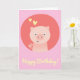 NewParkLane - Colourful Kids Birthday Card, with a cute little piglet cartoon, against a pink and red background.