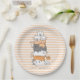 NewParkLane - Cute Birthday Paper Plates for kids or cat lovers, with a sweet pile of cats, against a soft orange striped background, and a text template with a happy birthday wish..